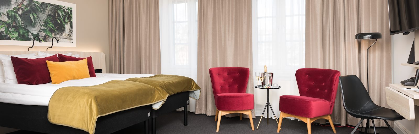 I vår vackra frukostmatsal får du en god start på dagen, där vår underbara frukostbuffé står uppdukad varje morgon. Hotellet är lätt att hitta till oavsett om du anländer med bil, buss eller tåg. Bilen parkerar du bekvämt i garaget och i receptionen säljer vi rabatterade parkeringsbiljetter.